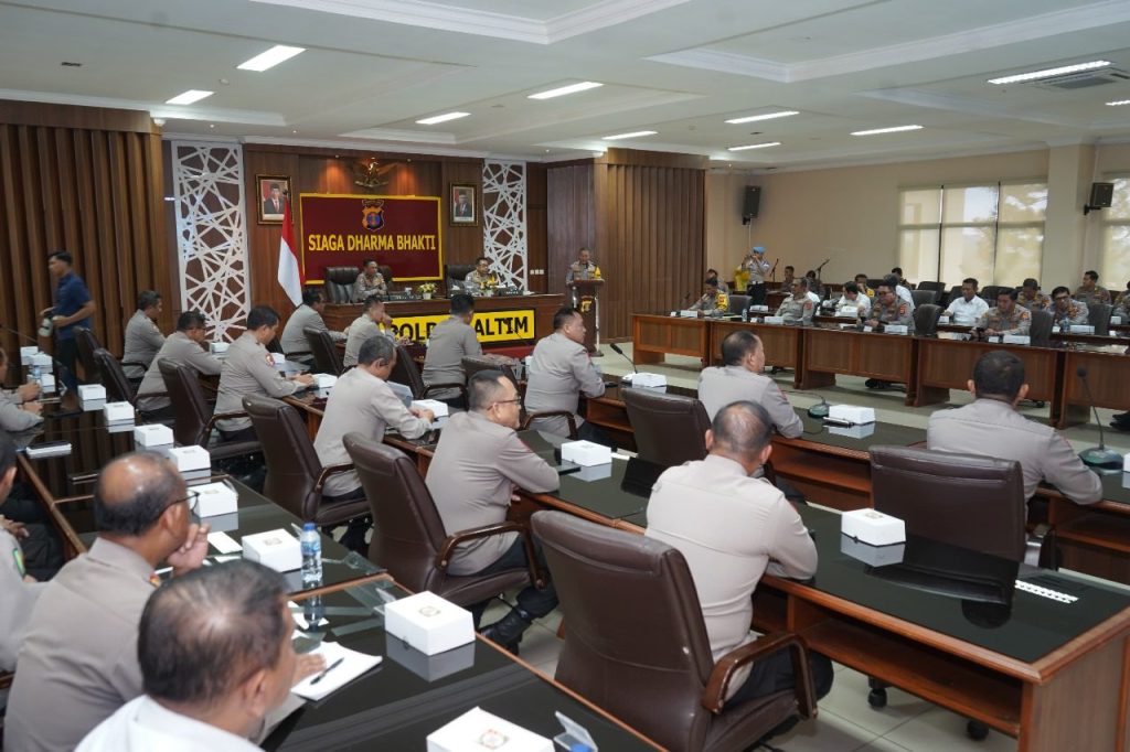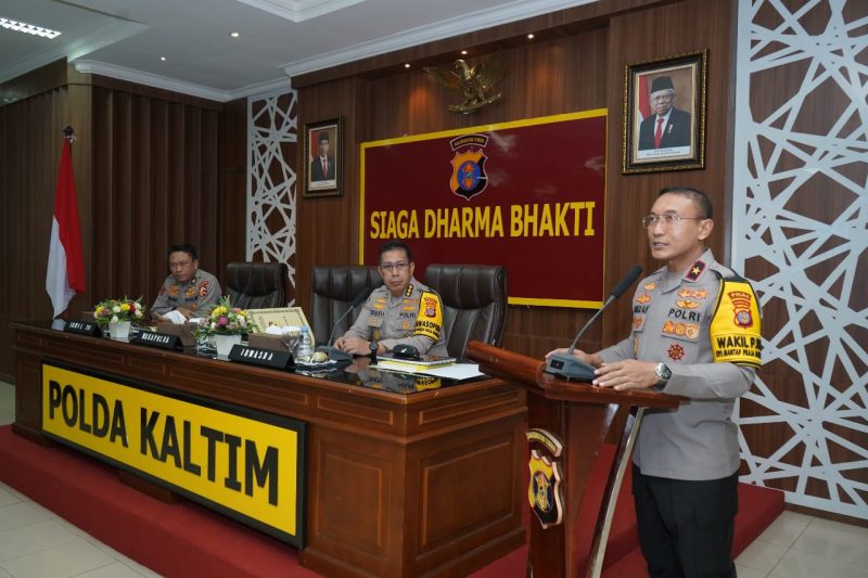 Kegiatan yang berlangsung di ruang Rupatama Polda Kaltim ini dipimpin langsung oleh Wakapolda Kaltim, Brigjen Pol Dr. M. Sabilul Alif, S.H., S.I.K., M.Si. Turut hadir dalam kegiatan ini Irwil III Itwasum Polri, Brigjen Pol Budi Widjanarko, S.H., M.H., serta jajaran pejabat utama Polda Kaltim dan satuan kerja lainnya yang mengikuti kegiatan melalui Zoom meeting. Senin (02/09/2024).