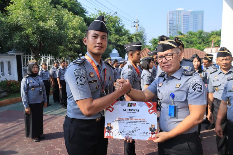 Perwakilan pegawai dari Lembaga Pemasyarakatan (Lapas) Kelas IIB Pasuruan, Alif Taufiqurrohman, berhasil memperoleh medali silver kategori self defend putra dan menerima langsung penghargaan yang diberikan oleh Kakanwil Kemenkumham Jatim.