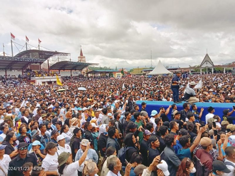 Sementara, puluhan ribu massa lainnya tertahan di sejumlah titik konsentrasi massa di luar lapangan, di dalam gedung serbaguna Tarutung, di Terminal Madya Tarutung, dan di sejumlah lokasi lainnya.