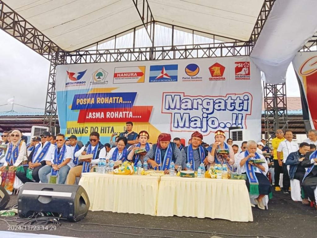 TAPUT SUMUT, Poskotanews.co.id– Kehadiran massa membludak saat menghadiri kampanye akbar pasangan calon bupati dan wakil bupati Tapanuli Utara, Jonius Taripar Parsaoran Hutabarat dan Deni Lumbantoruan atau akrab disapa pasangan JTP-Dens, di mana setidaknya sekitar empat puluhan ribu massa loyalis pendukung dan simpatisan memadati Kota Tarutung, dan hanya sebagian yang beruntung bisa masuk ke lokasi acara di Lapangan Serbaguna Tarutung.
