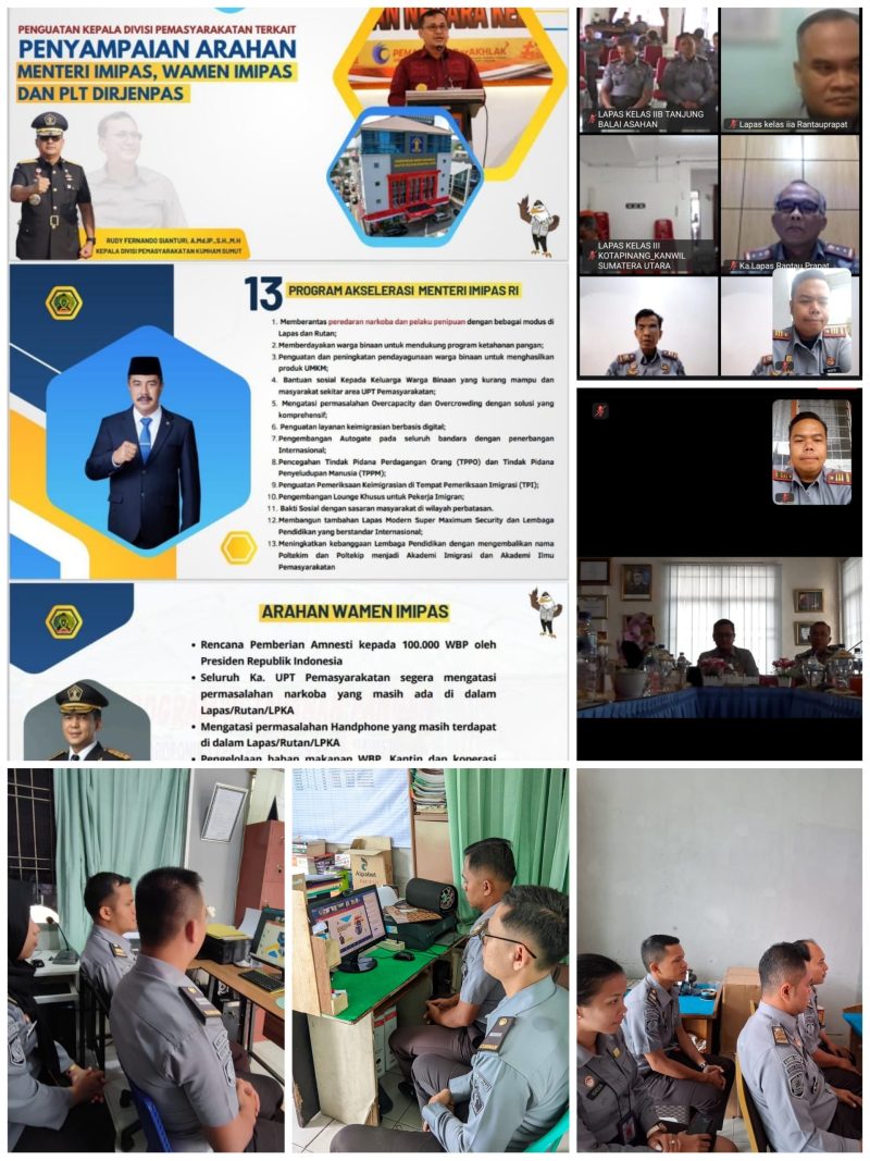 Kepala Divisi Pemasyarakatan Kemenkumham Sumatera Utara, Rudy Fernando Sianturi dalam arahannya juga memberikan penguatan terkait penyampaian arahan Menteri Imigrasi dan Pemasyarakatan, Agus Andrianto, Wakil Menteri Imigrasi dan Pemasyarakatan, Silmy Karim dan Plt. Direktur Jenderal Pemasyarakatan, Ambeg Paramarta.