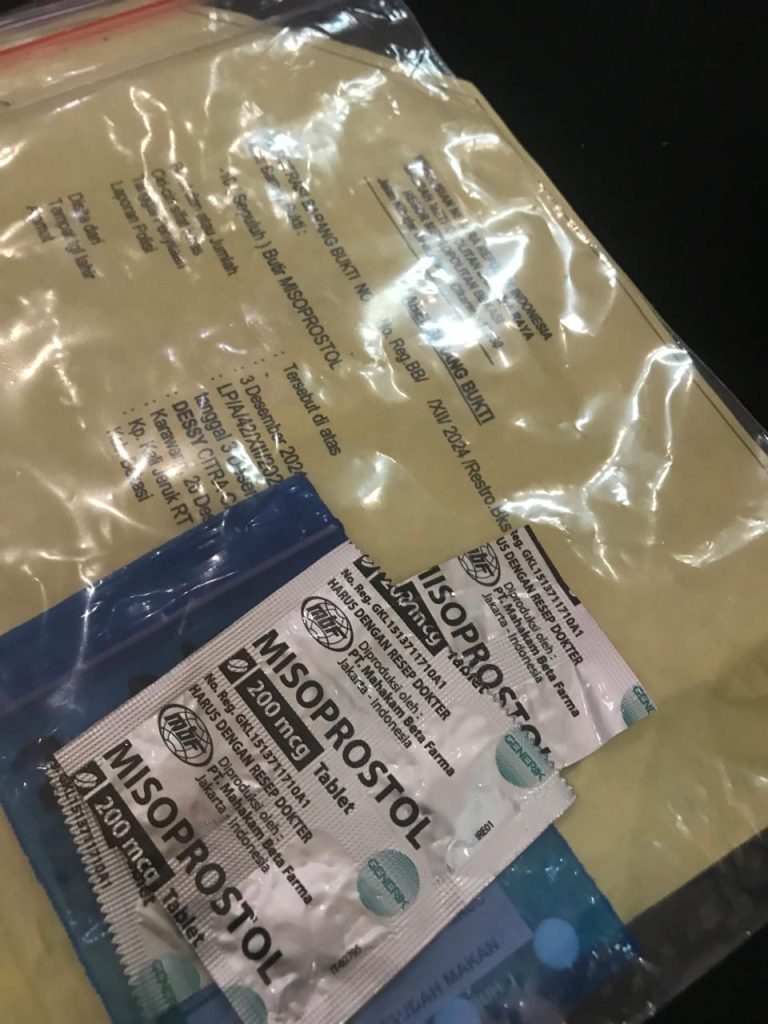 Saat diamankan, Polisi menyita barang bukti berupa 10 butir Misoprostol, 2 resep dokter yang diduga palsu, dan 6 butir Paracetamol.