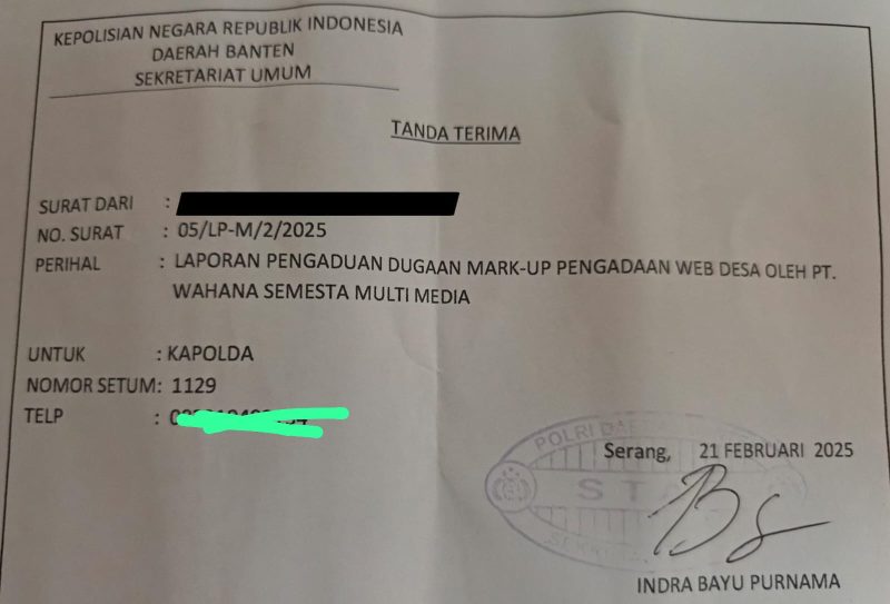 PT Wahana Semesta Multimedia Dilaporkan ke Polda Banten Terkait Dugaan Markup Website Desa