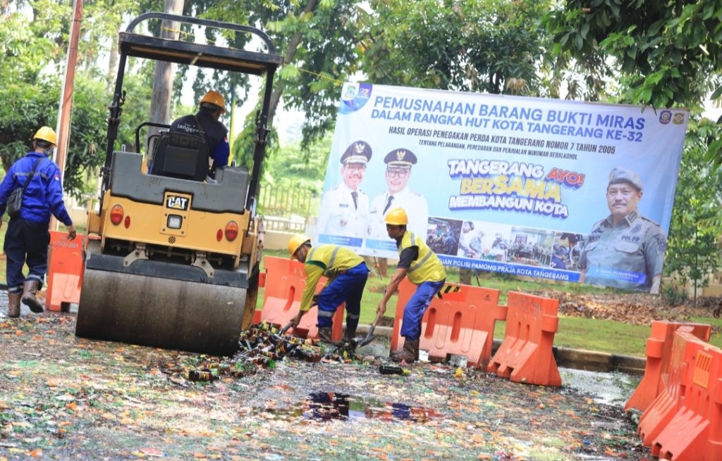 Tercatat, sebanyak 4.982 botol miras dari berbagai merek dimusnahkan di Halaman Pusat Pemerintahan (Puspem) Kota Tangerang, Jumat (28/02/2025).