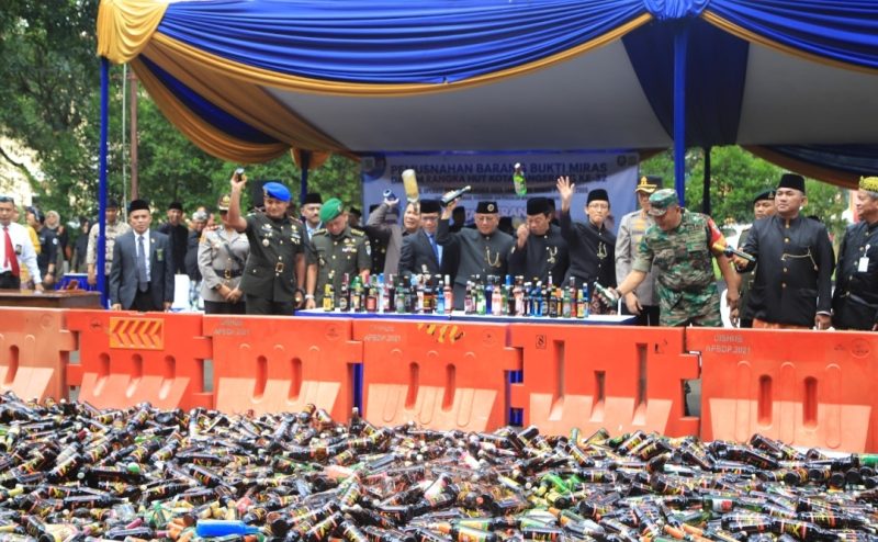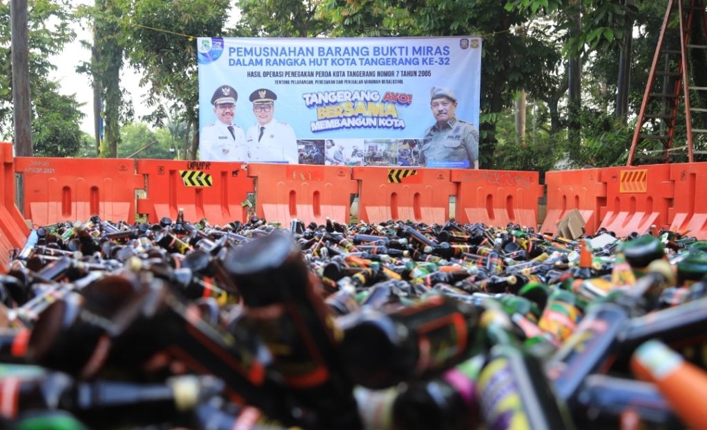 Semarak HUT Ke-32, Pemkot Tangerang Musnahkan Ribuan Botol Miras