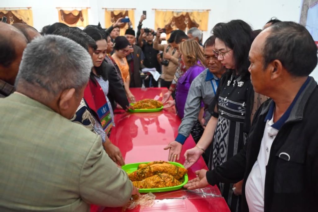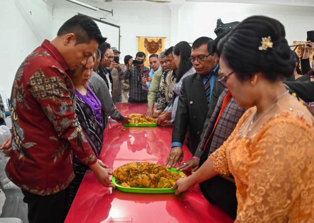 Sebagai tanda doa dalam tradisi adat Batak, keluarga Toga Marbun memberikan “Dekke, Ulos dan Manjomput Parbue Pir” kepada Bupati Humbahas Dr Oloan P. Nababan dan Wakil Bupati Humbahas Junita Rebeka Marbun SH M.AP.