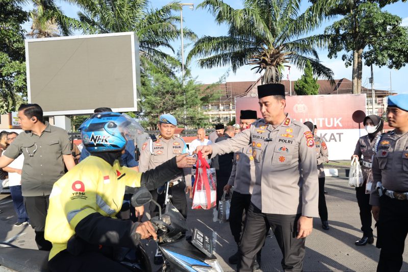 Dalam kesempatan tersebut, Kabid Humas menyampaikan bahwa kegiatan ini merupakan bagian dari aksi serentak yang dilaksanakan di seluruh Indonesia, dengan ratusan takjil yang dibagikan dan melibatkan ribuan media yang turun langsung bersama Polri untuk hadir di tengah masyarakat.