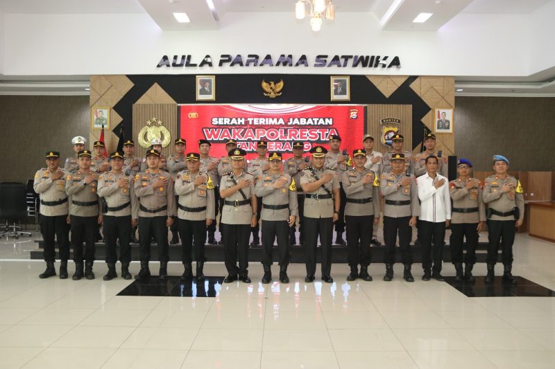 TANGERANG, Poskotanews.co.id – Kapolresta Tangerang, Kombes Pol Baktiar Joko Mujiono, memimpin acara serah terima jabatan (sertijab) Wakapolresta di Aula Parama Satwika Mapolresta Tangerang pada hari Jumat, 21 Maret 2024. Acara ini dihadiri oleh para pejabat utama, anggota Polresta Tangerang, serta tamu undangan lainnya.Dalam sambutannya, Kombes Pol Baktiar mengucapkan terima kasih kepada AKBP Agus Sugiyarso yang telah menjabat sebagai Wakapolresta Tangerang. Ia mengapresiasi dedikasi dan kerja keras AKBP Agus selama menjabat, yang telah memberikan kontribusi positif bagi Polresta Tangerang. “Kami berharap AKBP Agus sukses dalam tugas barunya sebagai Penata Kehumasan Polri TK III di Divisi Humas Polri,” ungkapnya.