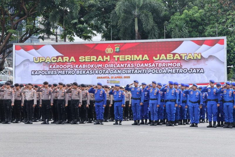 JAKARTA, Poskotanews.co.id – Kapolda Metro Jaya Irjen Pol Karyoto memimpin upacara serah terima jabatan (sertijab) enam pejabat utama Polda Metro Jaya. Upacara digelar di Lapangan Presisi Ditlantas Polda Metro Jaya, Selasa (15/4/2025).