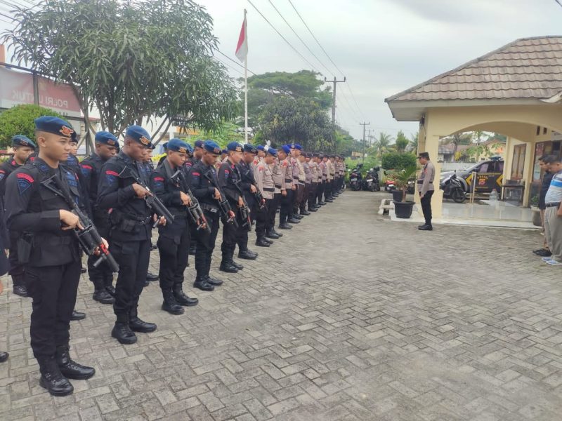 mengantisipasi potensi gangguan keamanan selama pelaksanaan Pemungutan Suara Ulang (PSU) di Kabupaten Serang, di Mako Polsek Tanara Jum’at (18/4/2025).