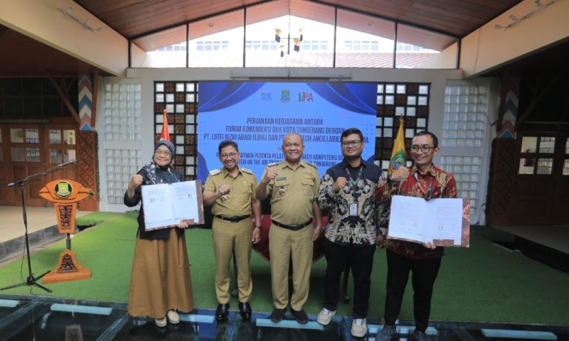 TANGERANG, Poskotanews.co.id – Sebagai upaya memperkuat program Gampang Kerja bagi masyarakat Kota Tangerang, Pemerintah Kota (Pemkot) Tangerang kembali menjalin kolaborasi dengan sektor swasta. Kerja sama ini bertujuan mencetak Sumber Daya Manusia (SDM) yang kompeten, khususnya lulusan SMK yang siap kerja dan berdaya saing. Kerja sama ditandai dengan penandatanganan Memorandum of Understanding (MoU) antara Forum Komunikasi Bursa Kerja Khusus (FK BKK) SMK Kota Tangerang dengan PT Lutfi Rizki Abadi (LIRA) dan PT High Tech Ancillaries Indonesia, mengenai proses rekrutmen peserta pelatihan berbasis kompetensi dengan sistem On the Job Training (OJT) di Kota Tangerang. Penandatanganan MoU ini disaksikan langsung oleh Wali Kota Tangerang, H. Sachrudin.
