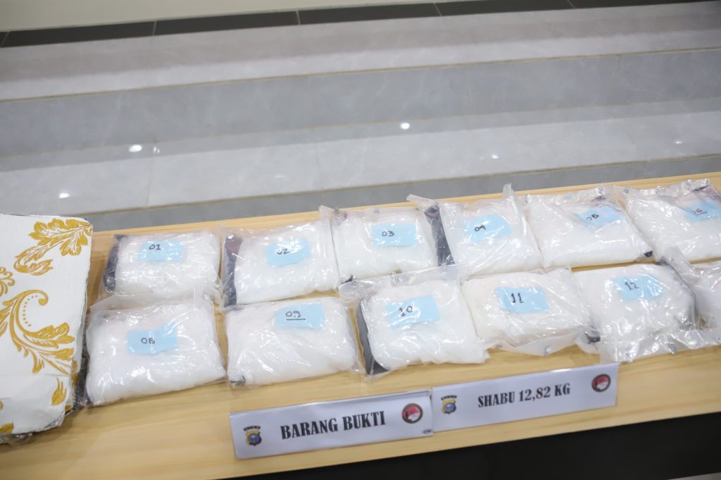 “Dalam operasi ini, polisi berhasil menyita 13 paket besar sabu dengan berat total 12,82 kg, yang diperkirakan memiliki nilai peredaran di pasar sebesar Rp12,8 miliar. Jika barang haram tersebut berhasil beredar di masyarakat, diperkirakan dapat membahayakan lebih dari 64.000 jiwa,” ujar Putu.