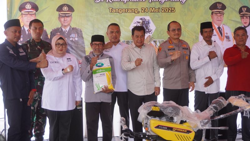 Dalam kegiatan itu, Kapolresta Tangerang Kombes Pol Bachtiar Joko Mujiono menyerahkan satu unit hand tractor kepada kelompok tani, sebagai bentuk dukungan konkret terhadap produktivitas petani di wilayah tersebut.