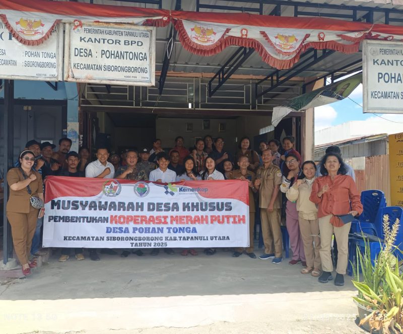 SIBORONGBORONG SUMUT, Poskotanews.co.id– Sesuai dengan Instruksi Presiden Republik Indonesia (Inpres) Nomor 9 Tahun 2025 tentang Percepatan Pembentukan Koperasi Desa/Kelurahan Merah Putih, warga Desa Pohan Tonga telah bentuk kepengurusan Koperasi Merah Putih dengan damai.