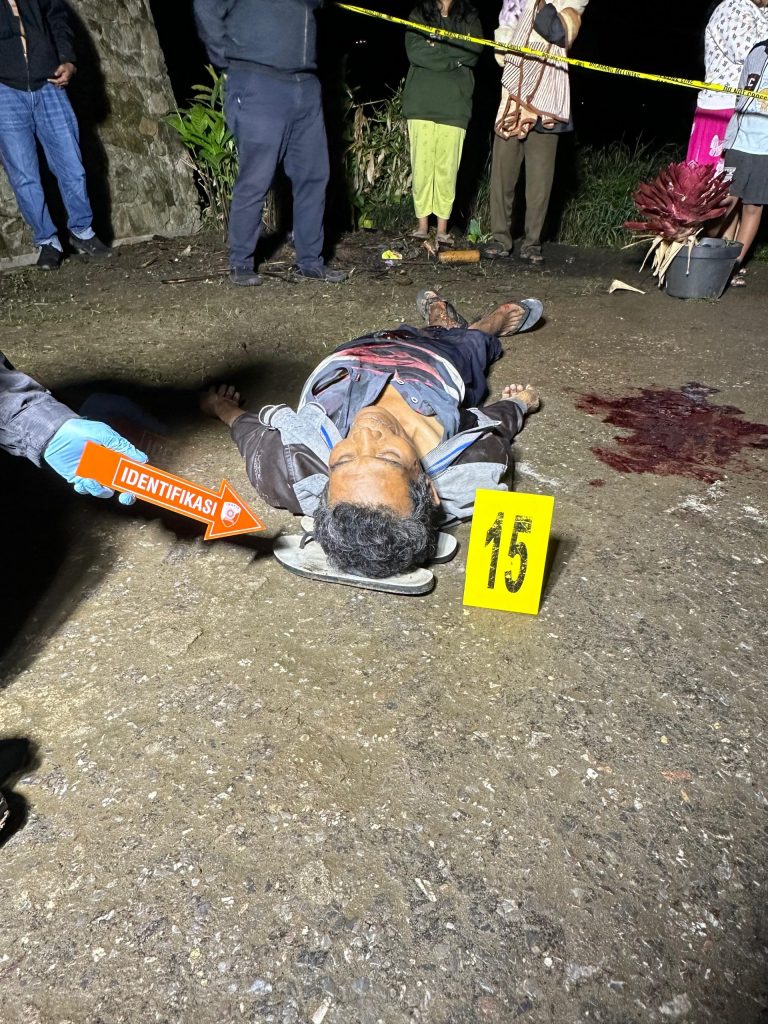 Selanjutnya pelaku menusuk korban dengan pisaunya di bagian dada hingga korban terkapar di jalan dan berlumuran darah hingga meninggal dunia.