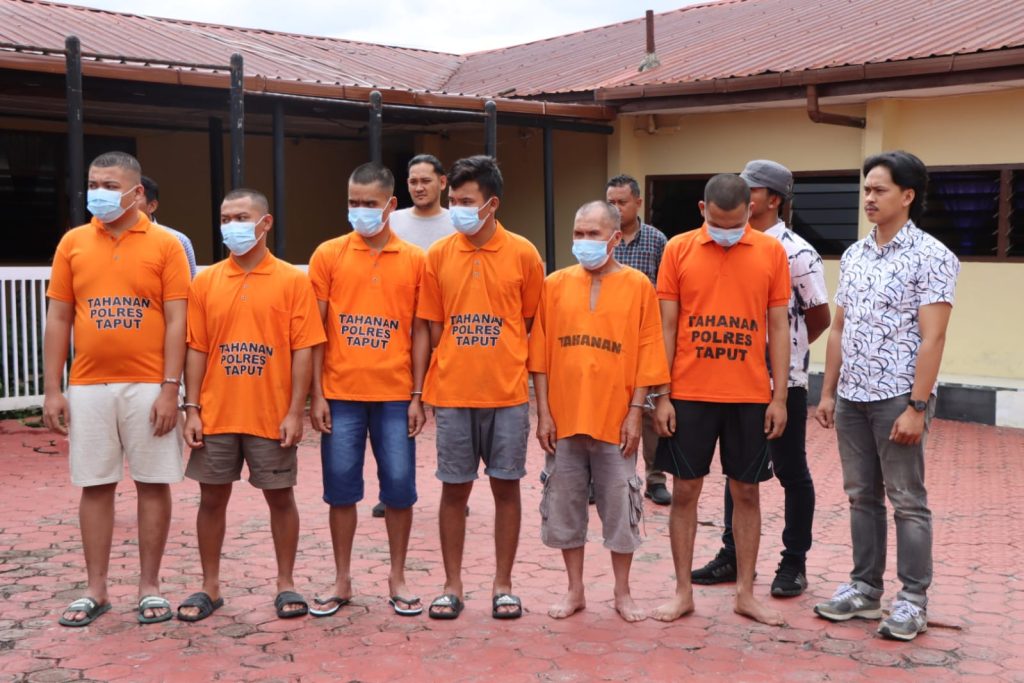 Ke enam tersangka tersebut yaitu RB ( 23 ) warga Simajambu, desa Simangumban Jae kecamatan Simangumban, Taput, SS ( 21 ) warga Luat Lombang, desa Luat Lombang, kecamatan Sipirok, Kabupaten Tapsel, RPH ( 21) warga Sipetang, Desa Simangumban Jae, kecamatan Simangumbang, Taput, CWH (23 ) warga Simangumban Jae, kecamatan Simangumban Taput dan HR ( 33 ) warga Dusun Hutaimbaru, Desa Luat Lombang, kecamatan Sipirok, kabupaten Tapsel dan TT ( 30) warga kecamatan Pangaribuan, Taput.