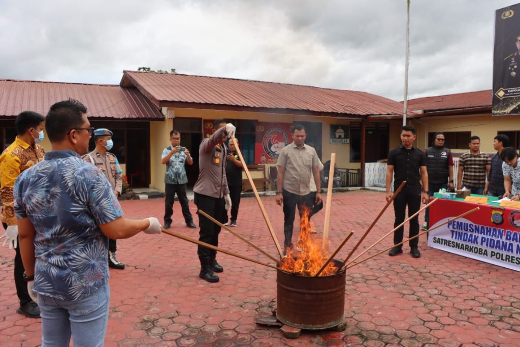 Barang bukti yang dimusnakan itu merupakan hasil penangkapan sat narkoba selama bulan agustus 2025 dari tangan enam tersangka.