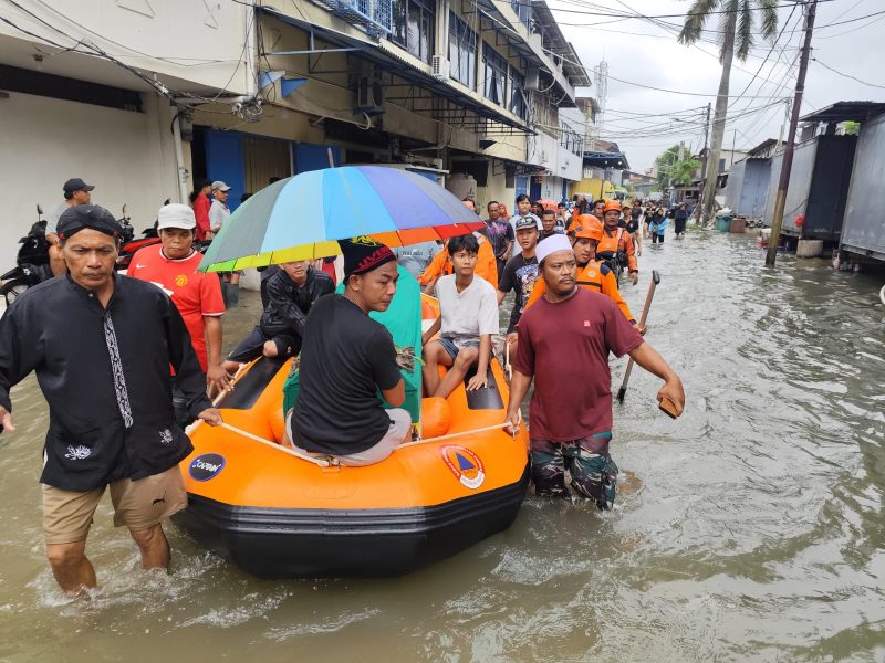 Komandan Tim BPBD Jakarta Utara, Ramdani, menyampaikan bahwa personel BPBD telah disiagakan di wilayah terdampak banjir dan melakukan evakuasi menggunakan perahu karet. Evakuasi diprioritaskan bagi kelompok rentan seperti perempuan, anak-anak, dan lansia yang terjebak di permukiman maupun akses jalan yang tergenang air.
