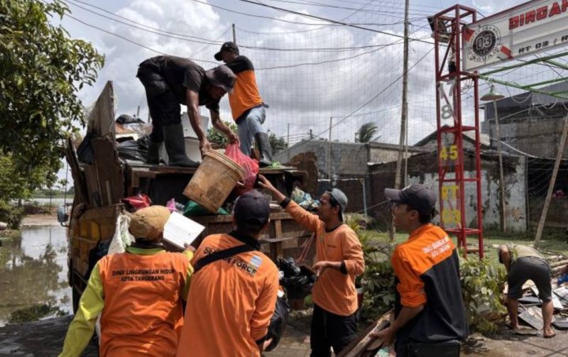 Berangsur Surut, 195 Petugas DLH Kota Tangerang Terus Bergerak Angkut Sampah Sisa Banjir