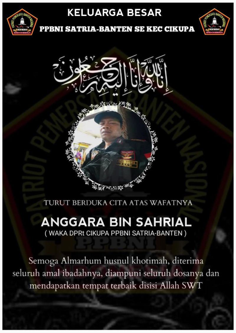 TANGERANG, Poskotanews.co.id- Innalillahi wa inna ilaihi rojiun. Kabar duka datang dari keluarga besar Ormas Patriot Pemersatu Banten Nasional Indonesia (PPBNI). Wakil Ketua PPBNI DPRT Cikupa, Kabupaten Tangerang.
